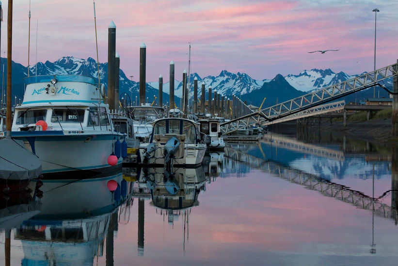 Homer — “The End of the Road”: Continuing south, we arrive in Homer at the end of the Sterling Highway, where the vast wilderness of Kachemak Bay unfolds. We’ll explore the Homer Spit and bustling harbor before taking a water taxi to Odyssey Lodge, our remote luxury retreat on a 23-acre isthmus between Peterson Bay and China Poot Bay. At Odyssey Lodge: